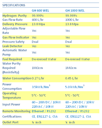 GasHub’s GH 600 WEL & GH 1000 WEL are models for operation with fuel cell test stations, or as a source of clean-burning fuel for flame tooks and many others. Proton Exchange Membrane technology is employed as the electrolyte for water electrolysis, which features low power consumption, rapid startup and high pure gas purity of 99.999%. The system eliminates the expensive gas infrastructure and storage safety concerns, and requires only de-ionised water to produce a constant supply of onsite Hydrogen gas with quality, reliability, safety and zero emission of greenhouse gases.